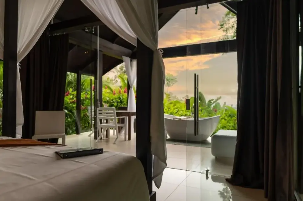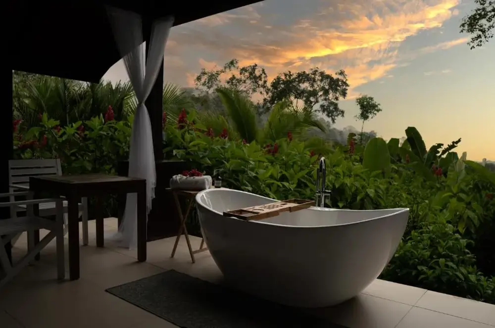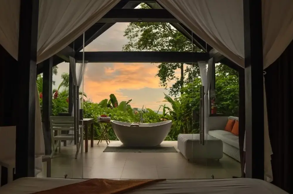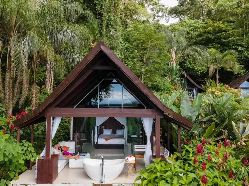 The Oxygen Jungle Villas & Spa sits along Camino de Sueños, just 1.5 kilometers northeast of Cascada Uvita in Uvita, Costa Rica. This property offers a blend of modern comforts and lush jungle immersion with its stylish bungalow accommodations designed for guests seeking both relaxation and exploration. The complex includes free airport transfers upon request, ensuring easy access from nearby airports like Drake Bay (52 km away) or Puerto Jiménez (86 km). Guests can enjoy complimentary parking on-site and explore the outdoor pool area while taking advantage of amenities such as free Wi-Fi throughout the property. For dining convenience, a restaurant serves meals on-site, including breakfast options available daily. Additional features include accessible guest facilities tailored to visitors with disabilities and a bar for leisurely drinks after exploring local attractions. Nearby points of interest range from Playa Ballena (7 km) and Parque Nacional Marino Ballena (2.6 km)—ideal spots for wildlife viewing—to Café Don Emilio (6 km) and Hermosa Beach (4.3 km), offering scenic coastal walks within short drives.